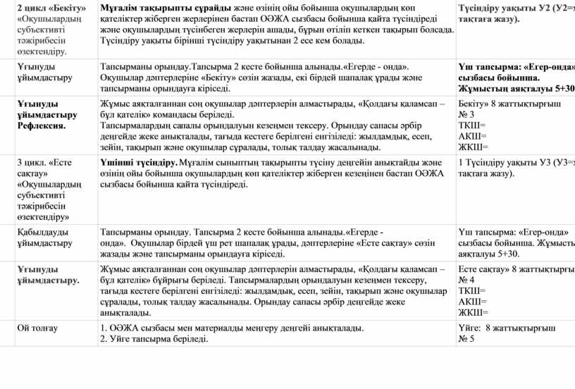 2 цикл «Бекіту» «Оқушылардың субъективті тәжірибесін өзектендіру. |