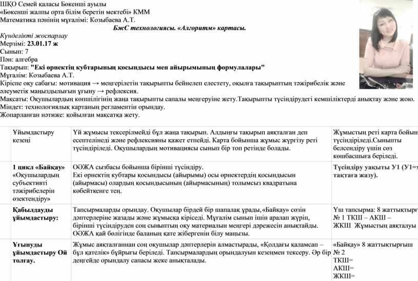 БжС технологиясы. «Алгоритм» картасы.