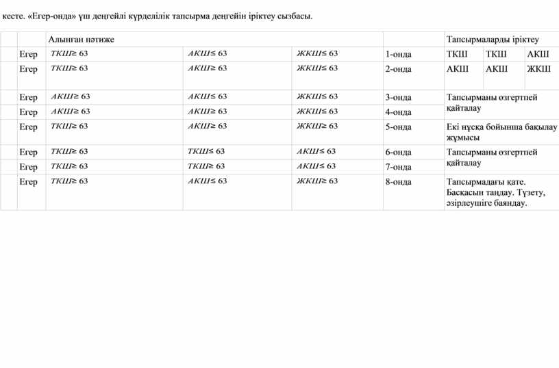 2 кесте. «Егер-онда» үш деңгейлі күрделілік тапсырма деңгейін іріктеу сызбасы.