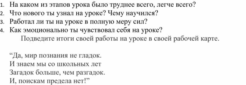 Подведите итоги своей работы на уроке в своей рабочей карте.