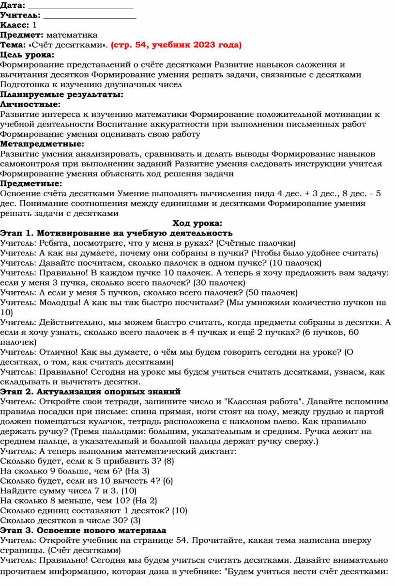 Тема: «Счёт десятками». (стр. 54, учебник 2023 года)