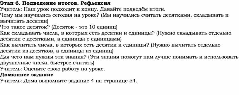Этап 6. Подведение итогов. Рефлексия