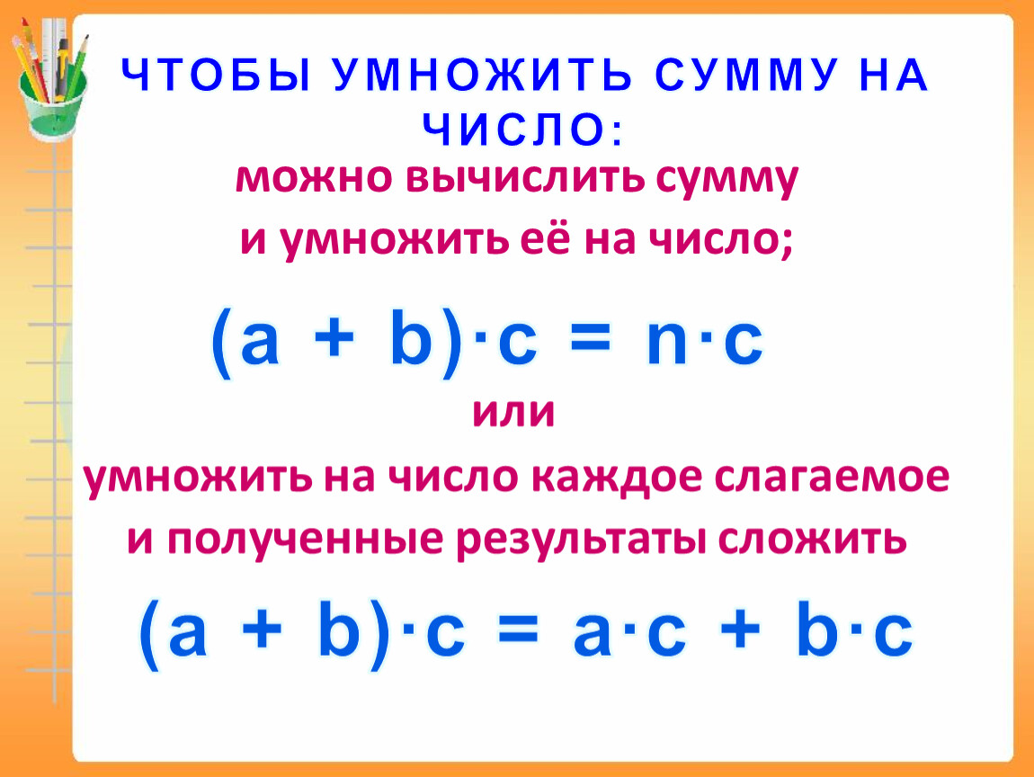 ЧТОБЫ УМНОЖИТЬ СУММУ НА ЧИСЛО: