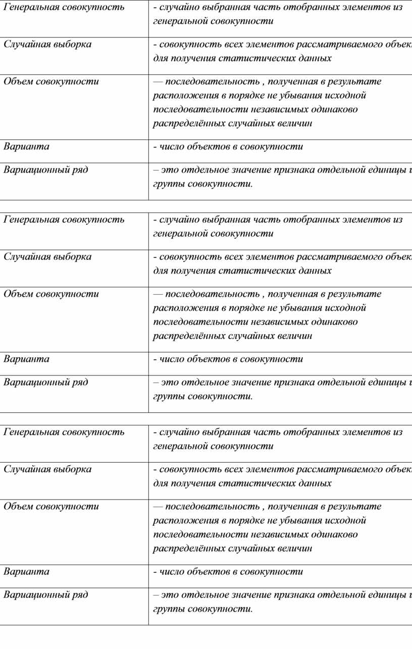 - совокупность всех элементов рассматриваемого объекта для получения статистических данных |