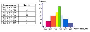 Пример 2.В таблице представлена информация о дистанциях, проезжая которые 40 автомобилей затрачивают полный бак бензина.