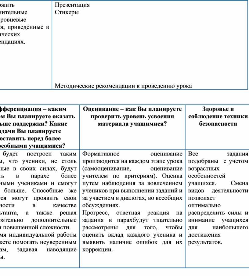 Методические рекомендации к проведению урока |