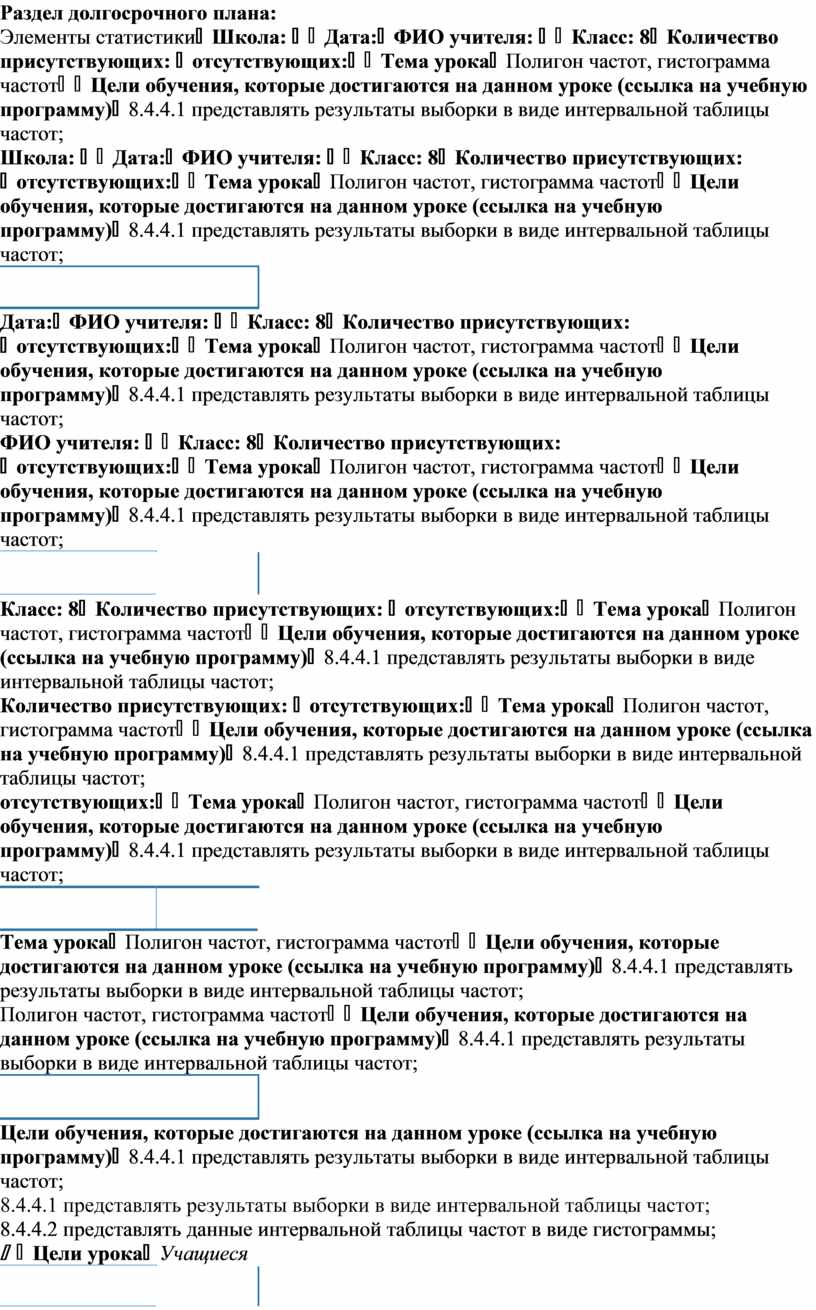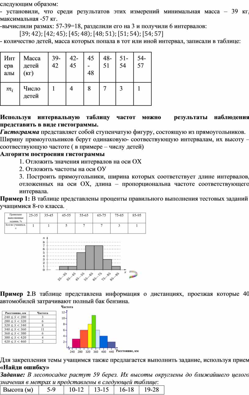 8.4.4.1 представлять результаты выборки в виде интервальной таблицы частот; 8.4.4.2 представлять данные интервальной таблицы частот в виде гистограммы;