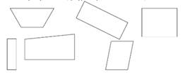 - Молодцы, сейчас я прочитаю вам математическую сказку. Слушайте внимательно. «Жила на свете важная фигура. Важность её признавалась всеми людьми, так как при изготовлении многих вещей форма её служила образцом. Кого бы ни встретила она на своём пути, всем хвалилась: «Посмотрите, какой у меня красивый вид: противоположные стороны равны, все углы прямые. Красивее меня нет фигуры на свете! - Как же тебя зовут? – спрашивали её. - А зовут меня просто….» - Кто догадался, как звали фигуру? (Прямоугольник) - Как догадались? (Признаки прямоугольника: противоположные стороны равны, все углы прямые) - Найдите среди данных фигур, представленных на доске, прямоугольники. - О какой фигуре мы сегодня будем говорить? (О прямоугольнике) - А как мы можем узнать, площадь какой фигуры больше? (наложением) - Верно, какая будет тема урока? (Площадь прямоугольника) - Какую поставим цель? (Научиться находить площадь прямоугольника) |