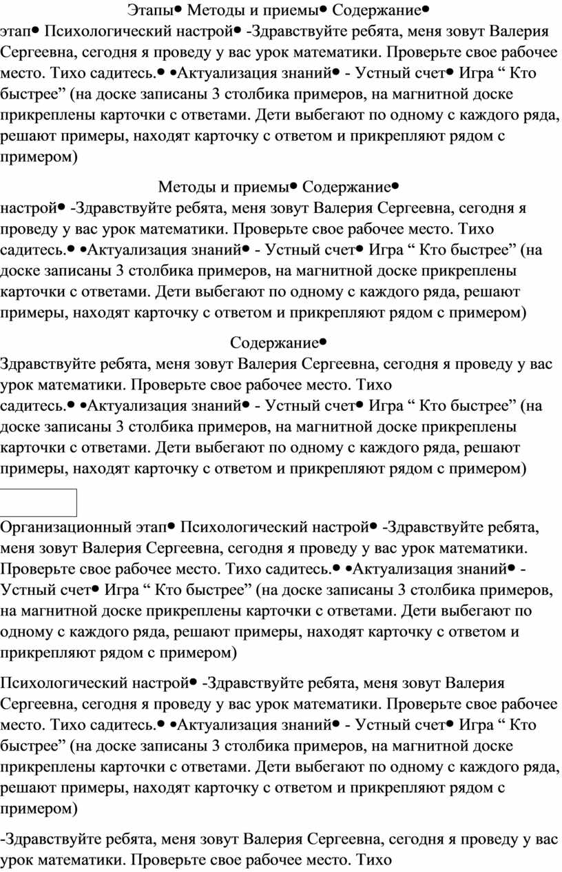 Конспект урока математики,