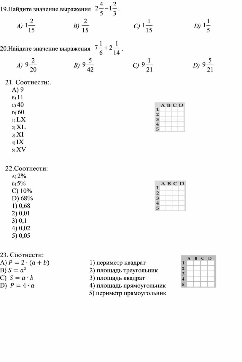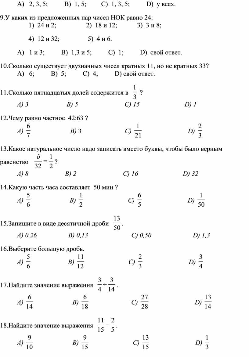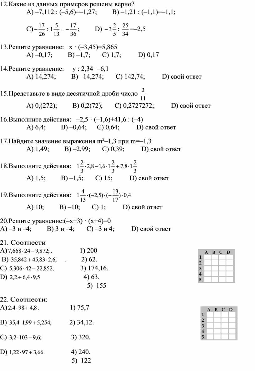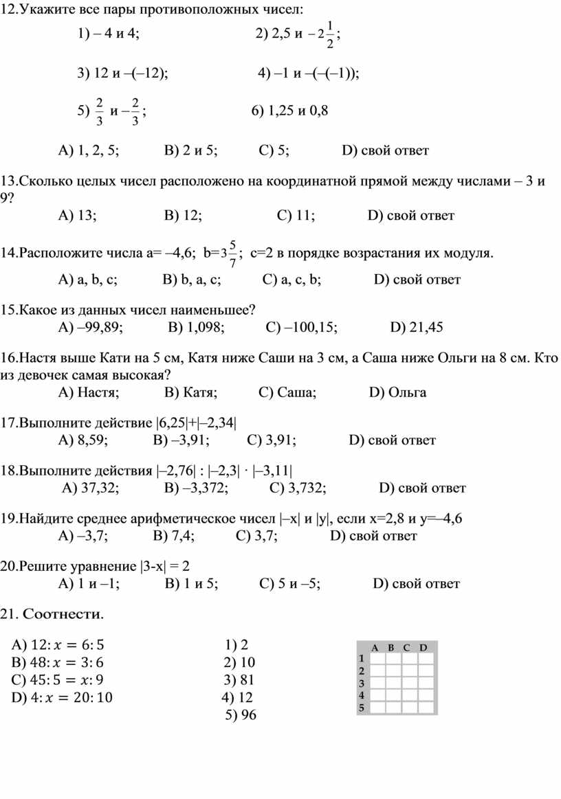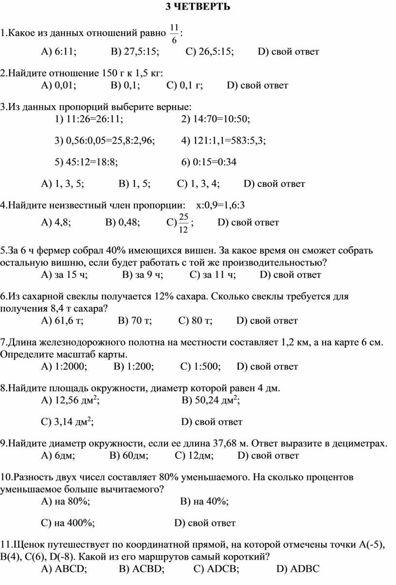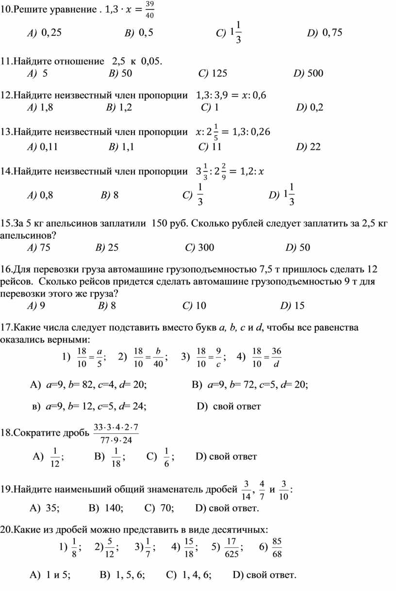 ТЕСТ ПО МАТЕМАТИКЕ 6 КЛАСС