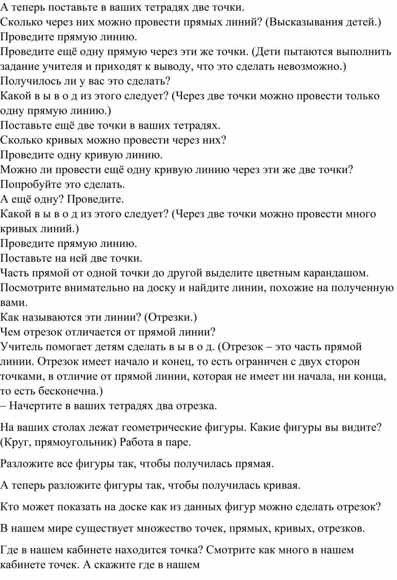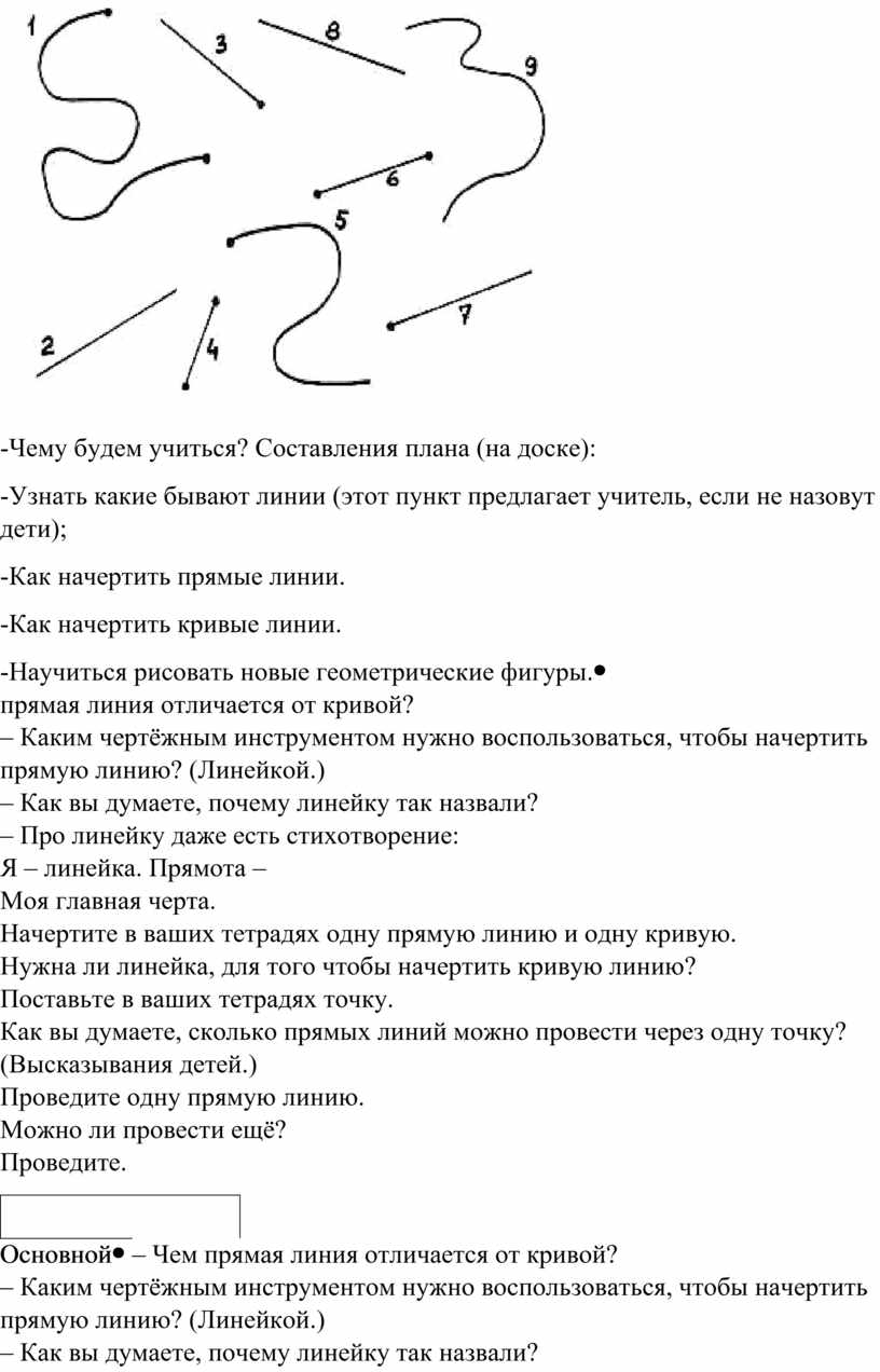 – Чем прямая линия отличается от кривой? – А ещё можно? Проведите. Какой в ы в