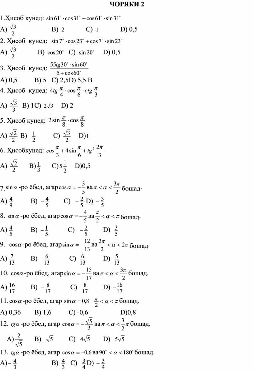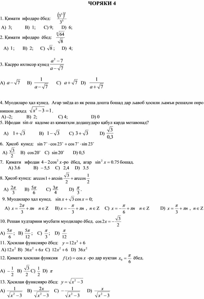 ТЕСТИ АЛГЕБРА СИНФИ 10