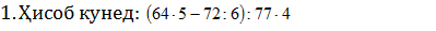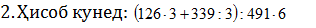 15. Ҳисоб кунед: ((1200 : 60 + 810 : 30+3):10)*2