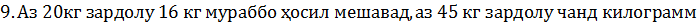 20.Ба як қуттӣ 8 кг қулфинай меғунҷад. Барои 152кг қулфинай чандто чунин қуттӣ лозим аст?