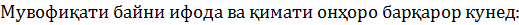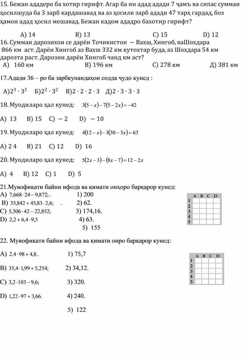 22.Ҷуфтҳои мувофиқи ҷумлаҳои математикиро бо навишти ифодаҳои он барқарор намоед.