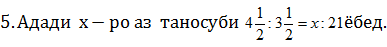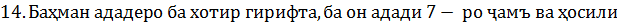 19.Миёнаи арифметикии ададҳои 2,7;1,9;7,8;2,9 ва 1,2-ро ёбед.