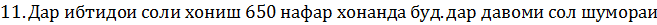 9. 20 солу 11 моҳ + 6 солу 10 моҳ = ? моҳ
