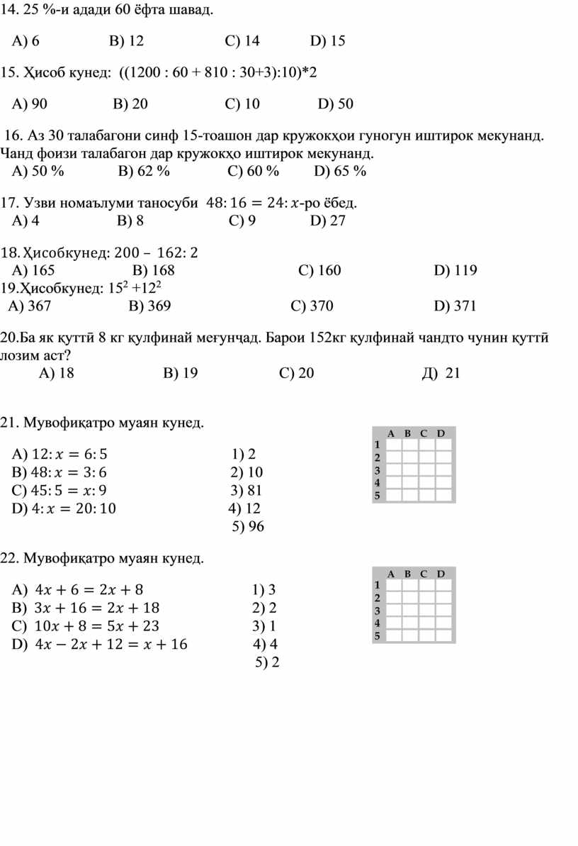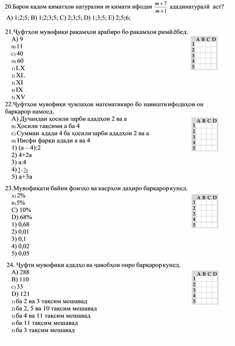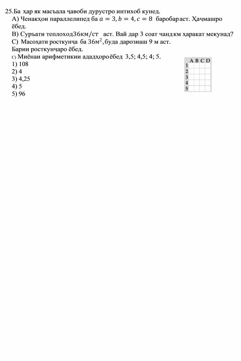 25.Ба ҳар як масъала ҷавоби дурустро интихоб кунед.