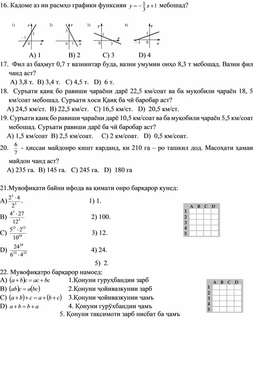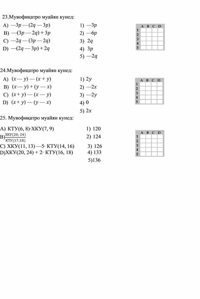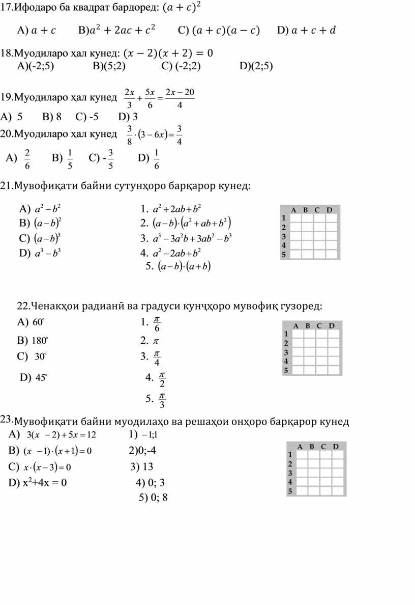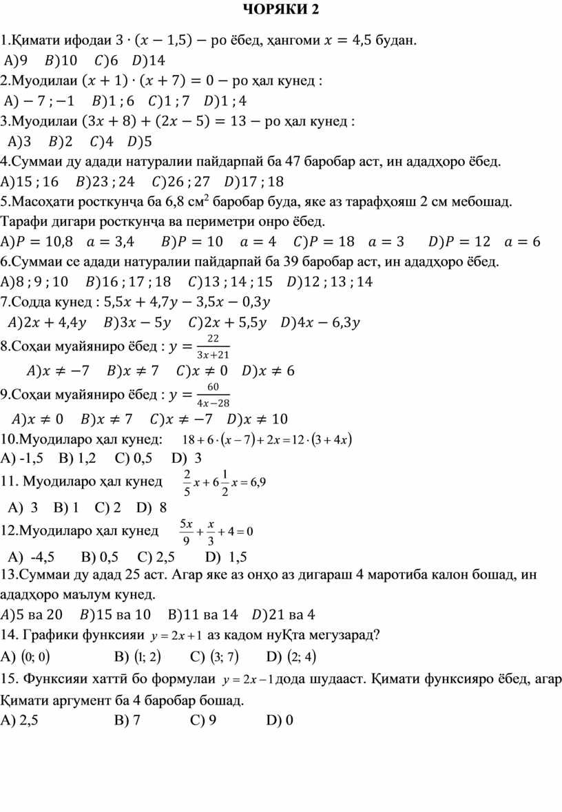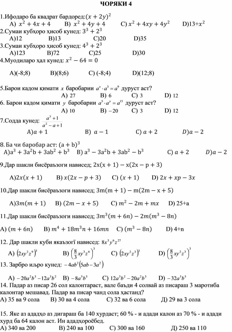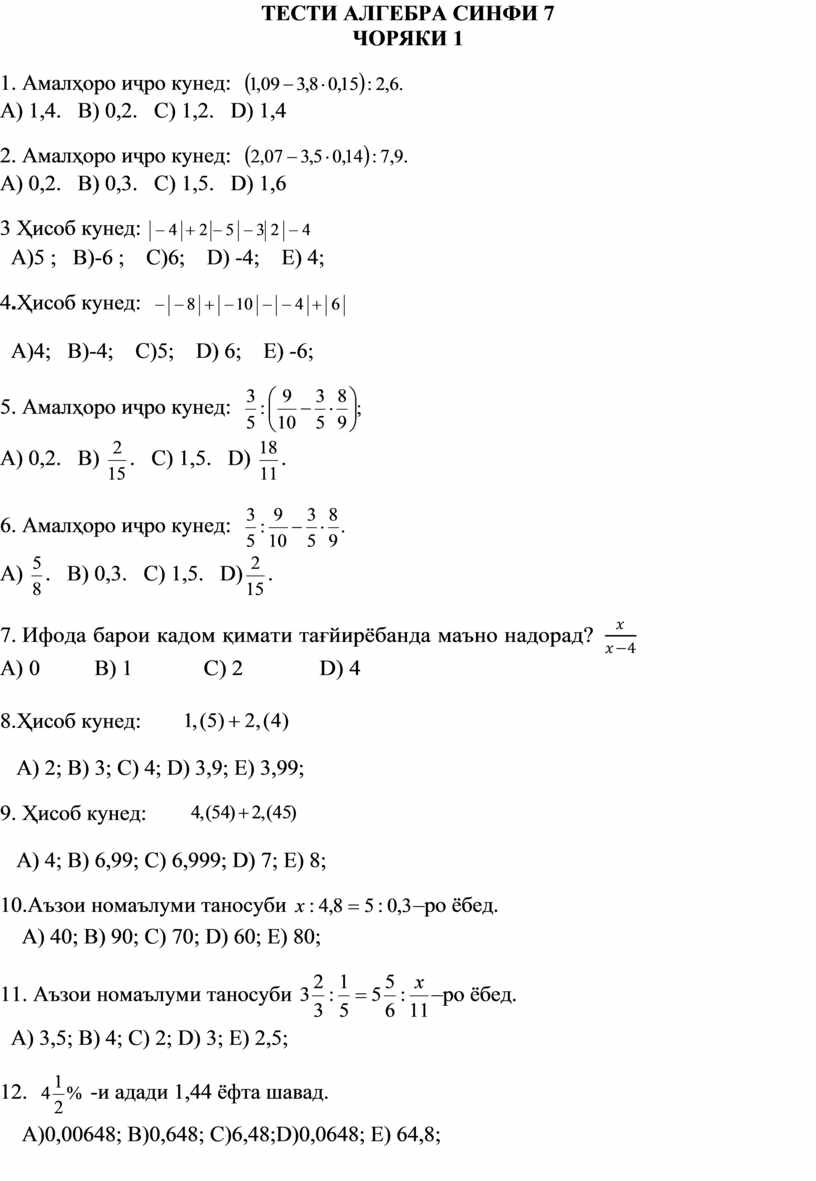 ТЕСТИ АЛГЕБРА СИНФИ 7