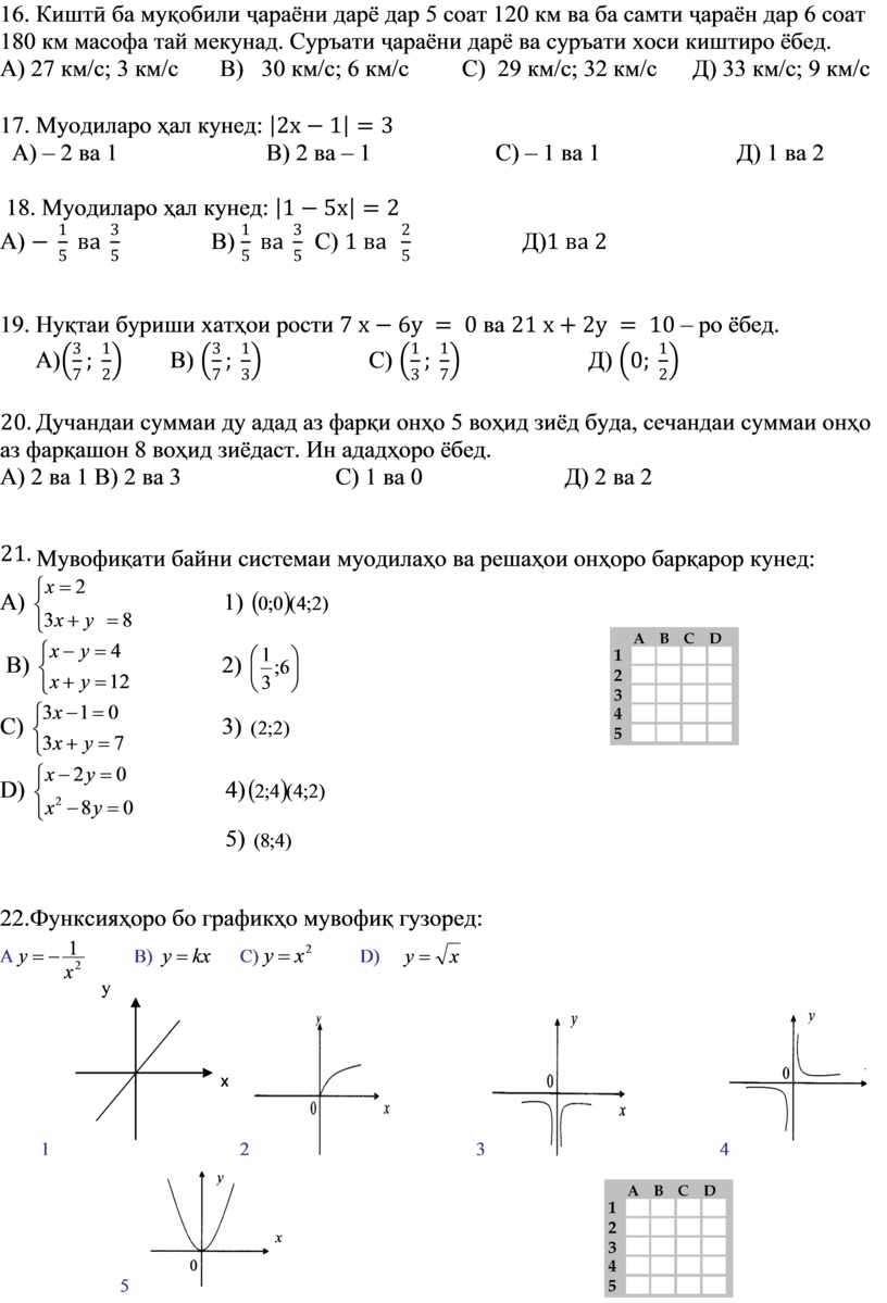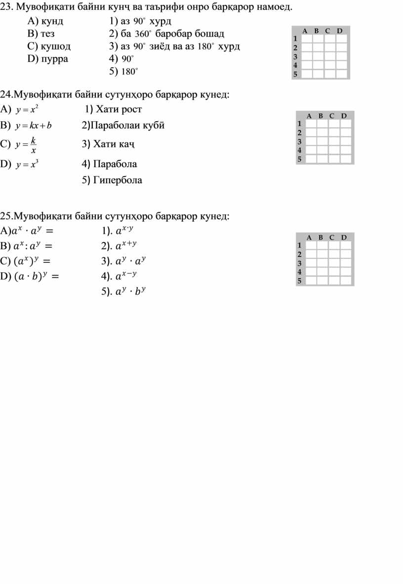 22.Функсияҳоро бо графикҳо мувофиқ гузоред: