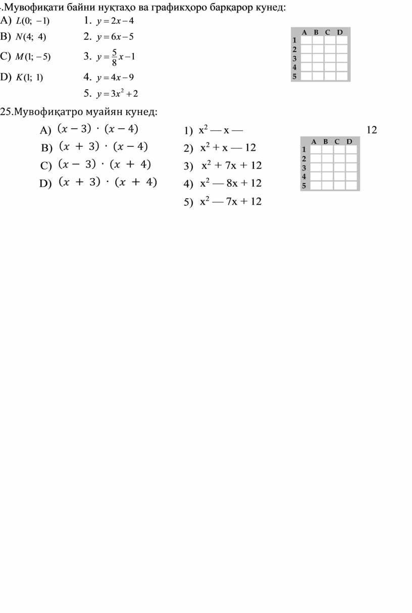 24.Мувофиқати байни нуқтаҳо ва графикҳоро барқарор кунед: