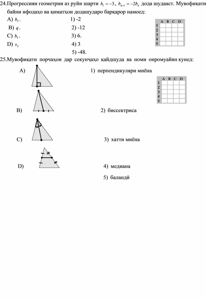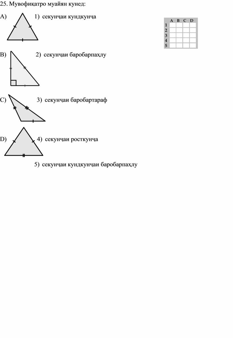 25.Мувофиқати порчаҳои дар секунҷаҳо қайдшуда ва номи онро муайян кунед: