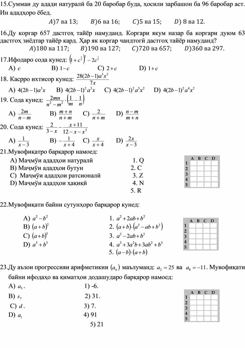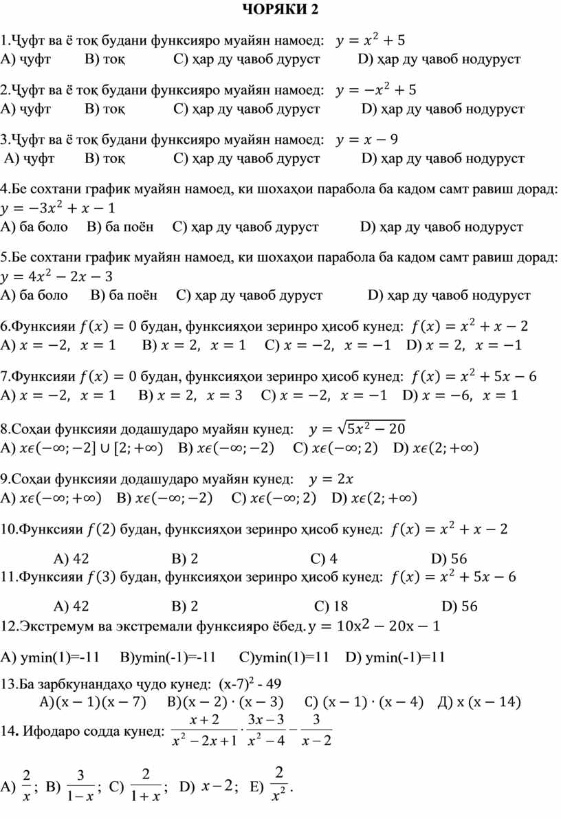 ТЕСТИ АЛГЕБРА СИНФИ 9