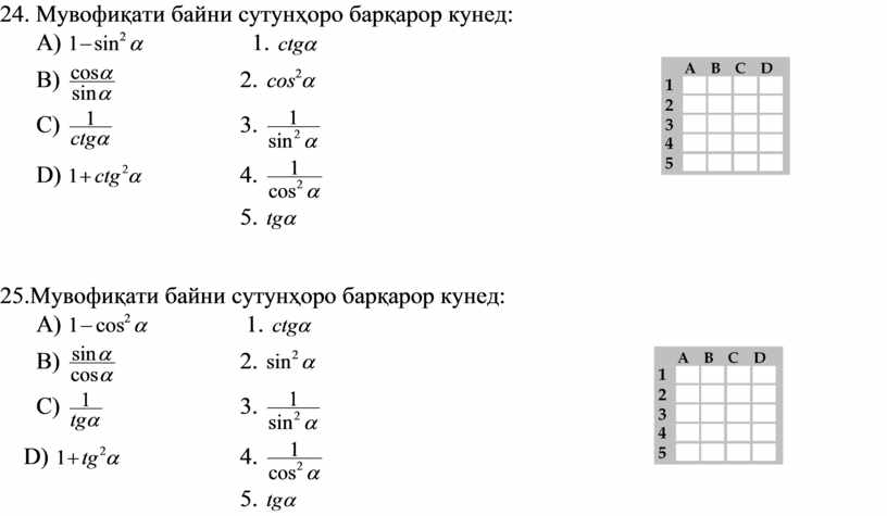 24. Мувофиқати байни сутунҳоро барқарор кунед: