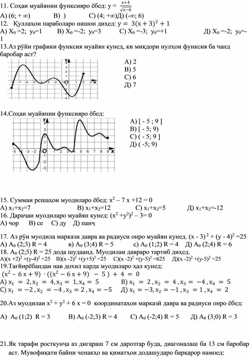 16. Дараҷаи муодиларо муайян кунед: (х2 +у2)2 – 3= 0