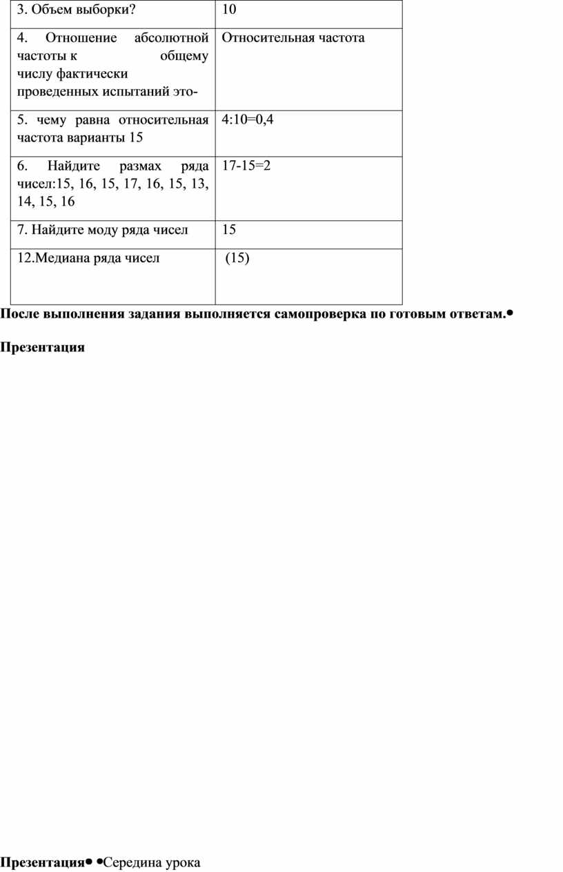 Середина урока