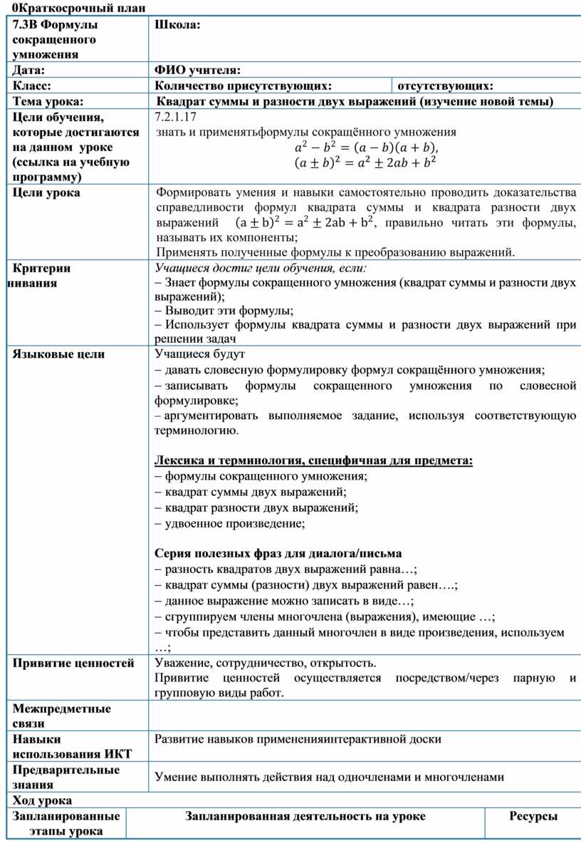 7.2.1.17 знать и применятьформулы сокращённого умножения
