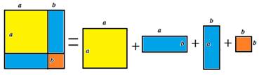 Вывести формулы квадрата суммы и разности двух выраженийпри помощи следующих фигур. Выполнить чертеж и записать в тетрадь вывод формул. 1)
