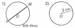 2. Используя данные чертежей, выполните чертежи в тетради и запишите обозначения окружностей на математическом языке.