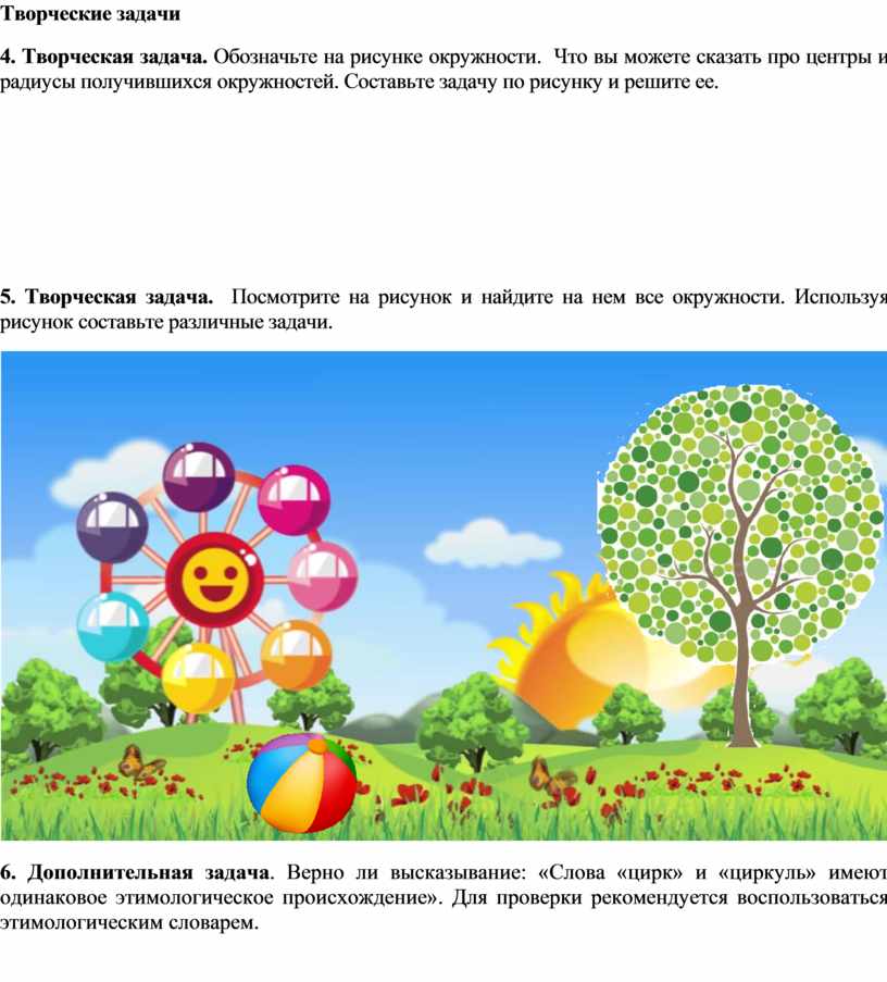 5. Творческая задача. Посмотрите на рисунок и найдите на нем все окружности. Используя рисунок составьте различные задачи.