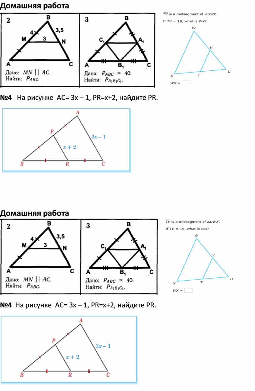 №4 На рисунке AC= 3x – 1, PR=x+2, найдите PR.