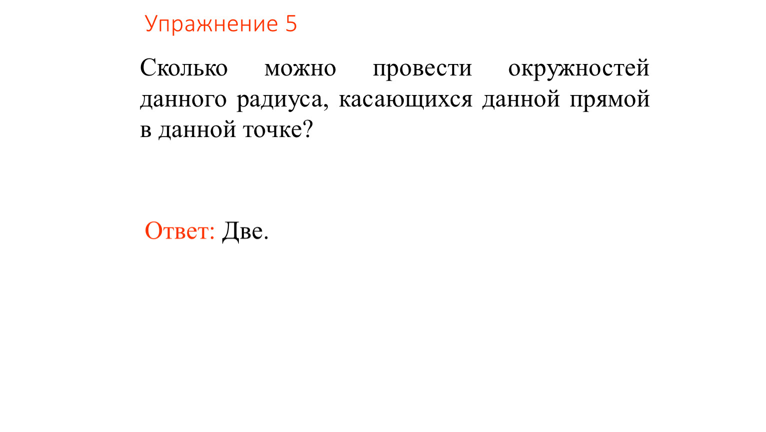 Сколько можно провести окружностей данного радиуса, касающихся данной прямой в данной точке?