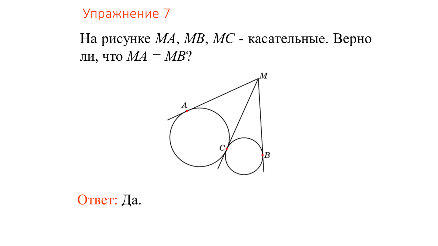 На рисунке MA, MB, MC - касательные. В каком отношении делит точка M отрезок AB?