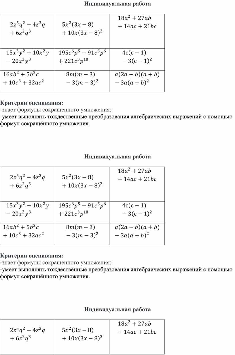 -умеет выполнять тождественные преобразования алгебраических выражений с помощью формул сокращённого умножения.