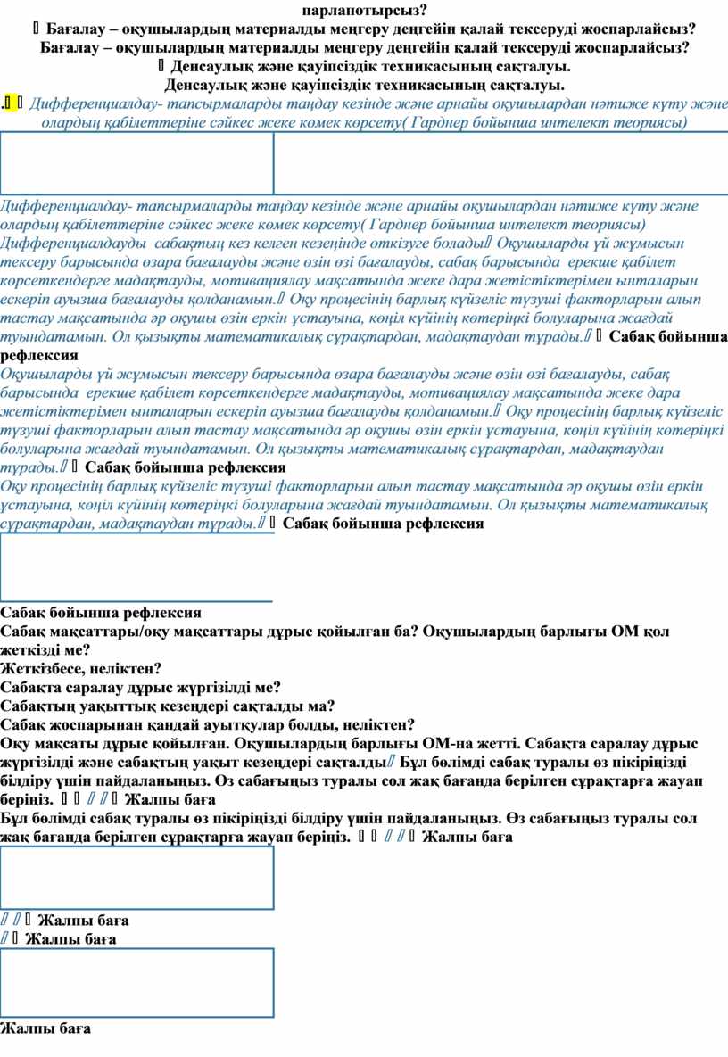 Сабақбарысындасыныптуралынемесежекелегеноқушылардыңжетістік/қиындықтарытуралыненібілдім, келесісабақтарда неге көңілбөлуқажет?