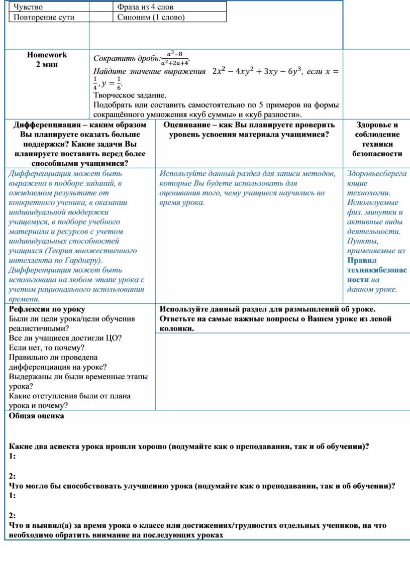 Используйте данный раздел для размышлений об уроке. Ответьте на самые важные вопросы о Вашем уроке из левой колонки. |