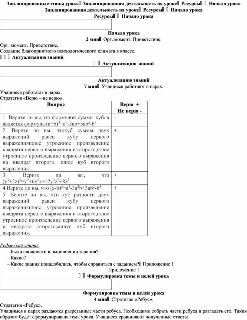 Формулы сокращенного умножения : куб суммы и куб разности. (Урок закрепления). |