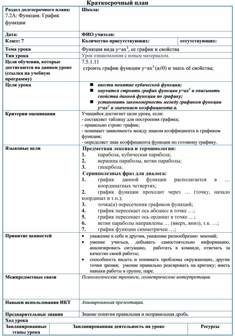 7.5.1.11 строить график функции у=ах3 (а≠0) и знать её свойства; |