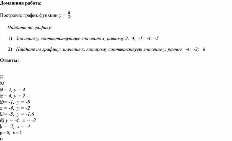 2) Найдите по графику: значение х, которому соответствует значение у, равное -4; -2; 8