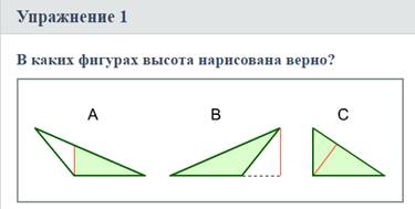 Расположение высот в остроугольном, прямоугольном и тупоугольном треугольниках |