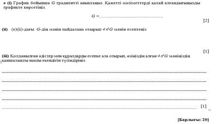 Оқушылар өлшенген және есептелген мәндерді кесте құрып, оған ХБЖ-нің негізгі бірліктерімен талап етілген дәлдікпен толтырады. Графикте тәуелді шамалар арасындағы байланысты графикте жақсы түзумен көрсетеді, масштабын таңдау кезінде графикке берілген алаңның жартысынан үлкен бөлігін қамтиды, градиентті үшбұрыш әдісімен анықтайды, градиенттің мәні нені білдіретінін түсінеді, есептелген шама мен тұрақты шама екеуін салыстырып қателіктерді анықтап, олардың орын алу себептерін қарастырып, мүмкін болатын ұсыныстарын жазып қорытындылайды.