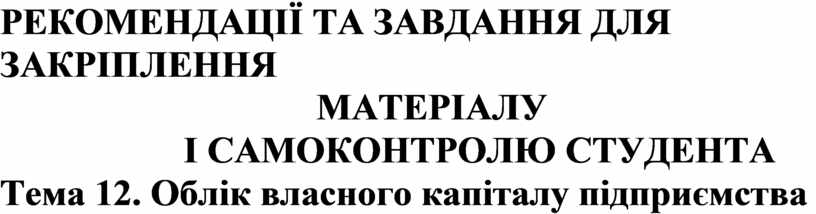 РЕКОМЕНДАЦІЇ ТА ЗАВДАННЯ ДЛЯ ЗАКРІПЛЕННЯ