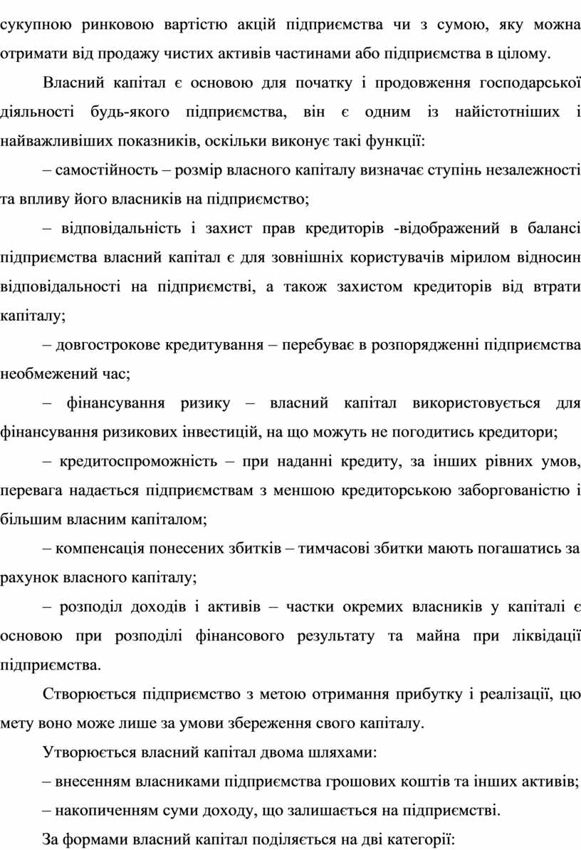 Власний капітал є основою для початку і продовження господарської діяльності будь-якого підприємства, він є одним із найістотніших і найважливіших показників, оскільки виконує такі функції: