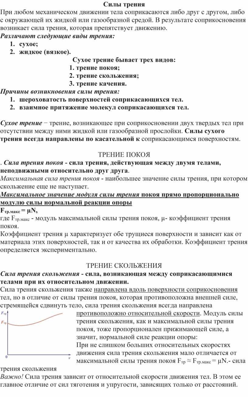 1) отсутствие силы трения покоя; 2) зависимость от относительной скорости движения.