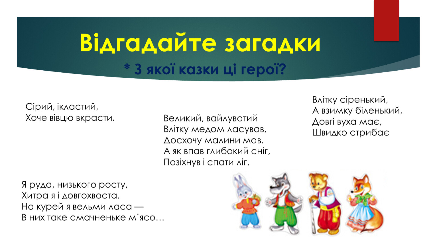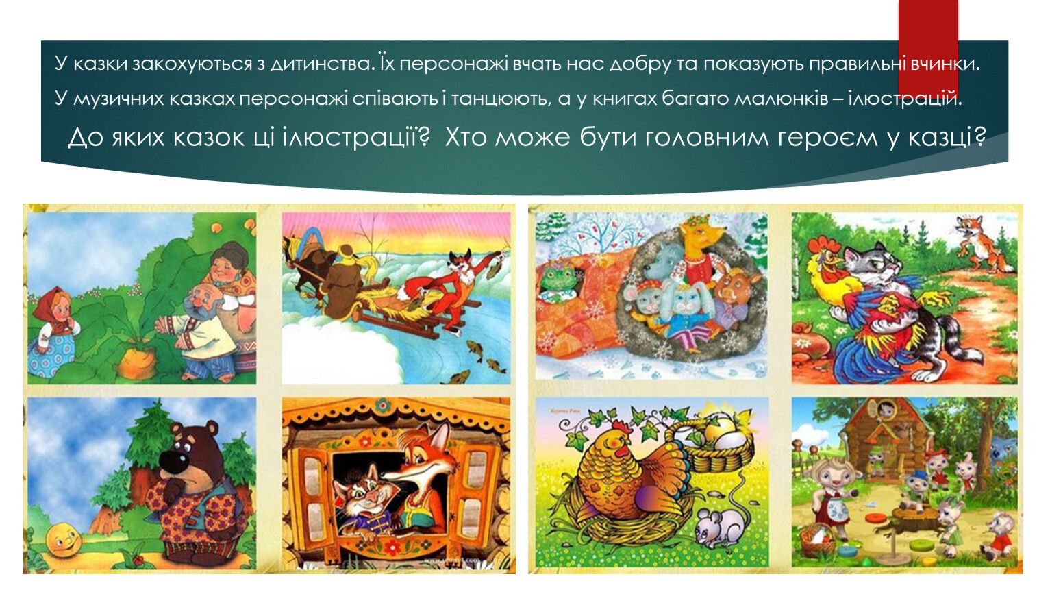До яких казок ці ілюстрації? Хто може бути головним героєм у казці?
