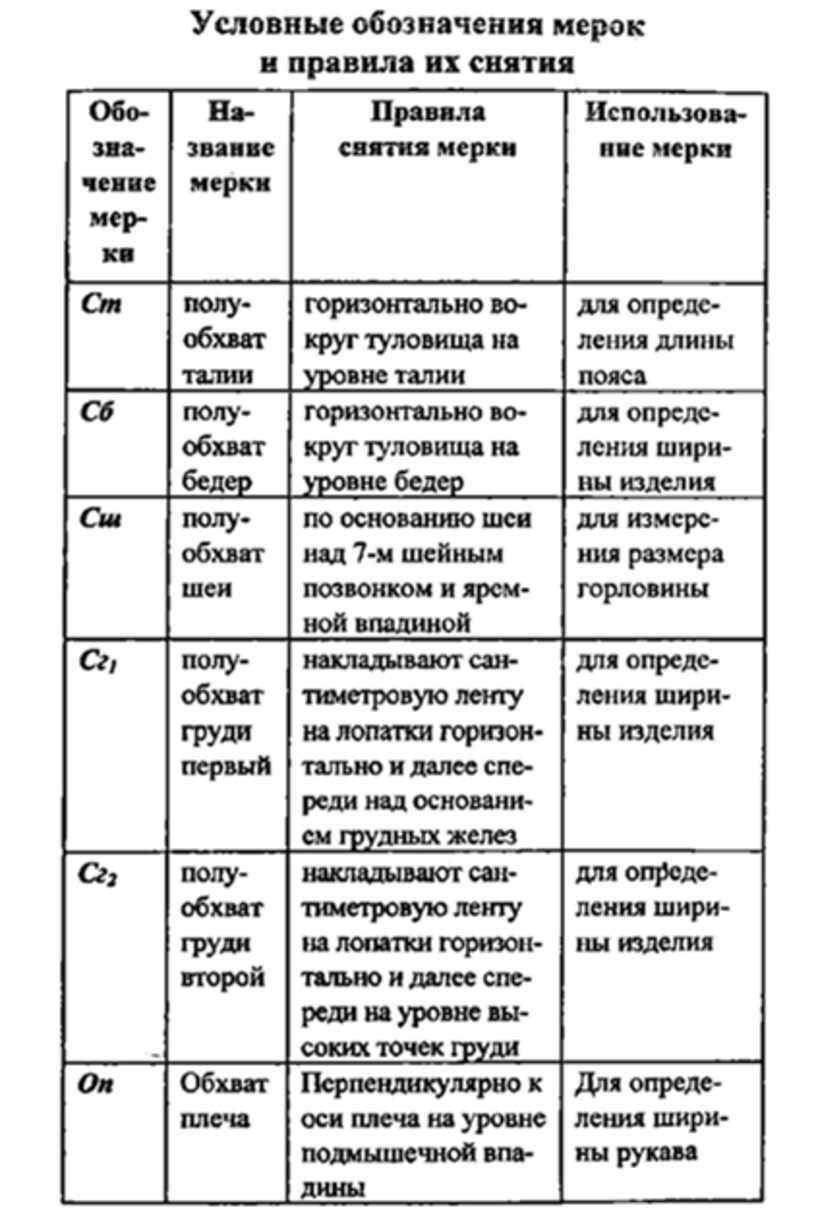 Технология в таблицах условное обозначение мерок.docx